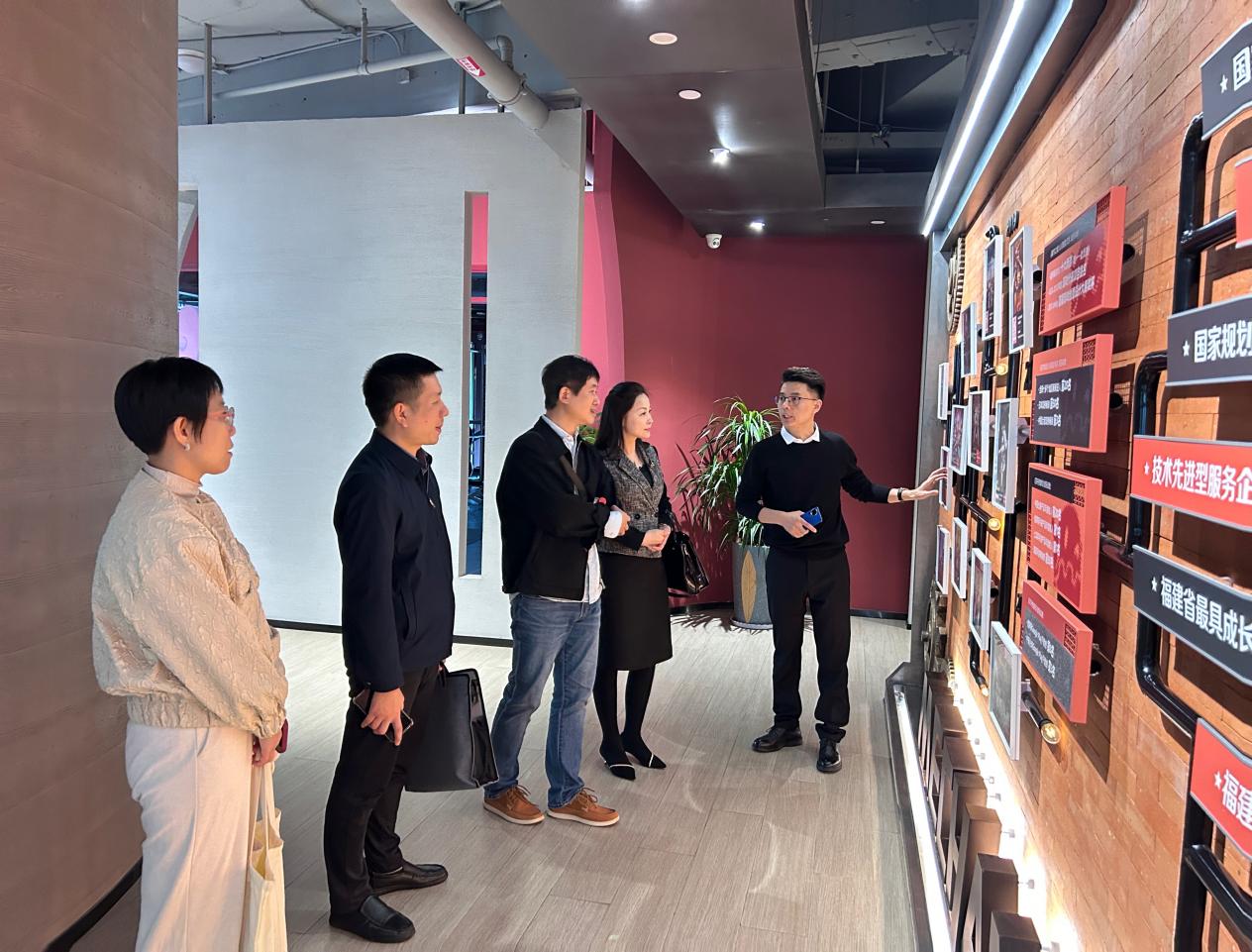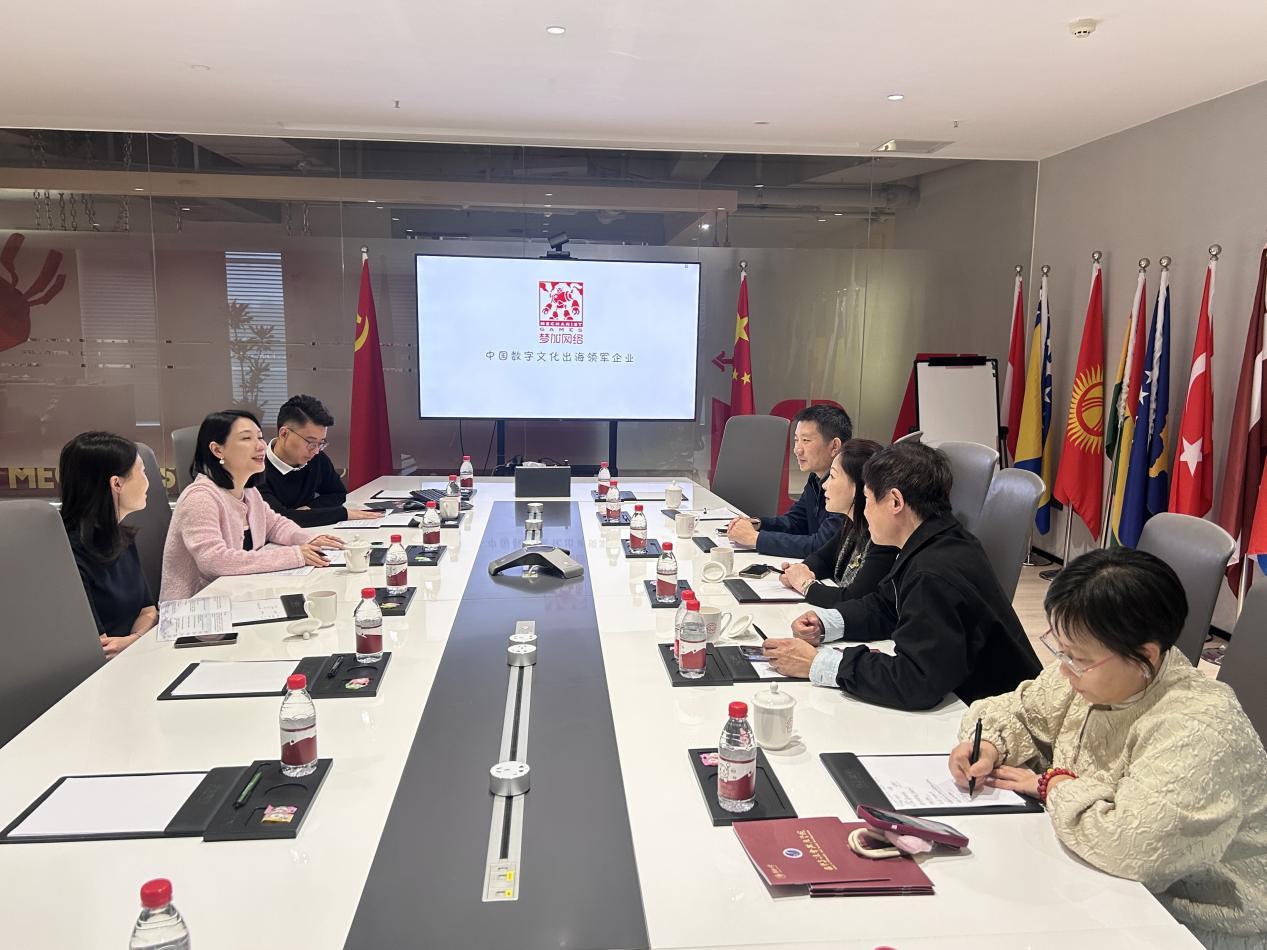 梦加网络科技股份有限公司董事长卢珊对学院一行到来表示热烈欢迎,在企业相关负责人陪同下,我院实地参观企业展示墙,详细了解其业务布局、发展理念及文化出海成果,并围绕校企合作深入座谈。