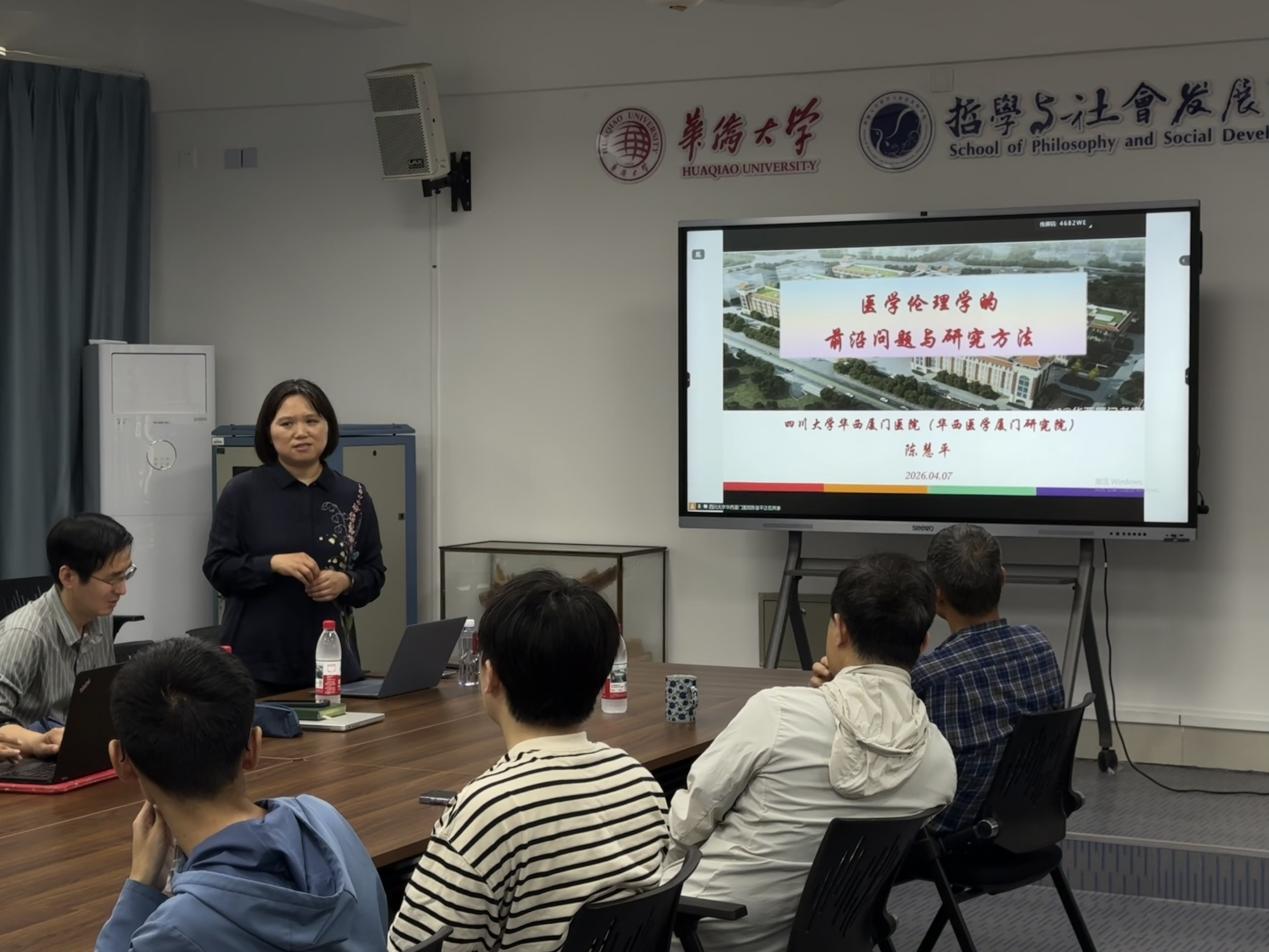 2026年4月7日上午,77779193永利主办的“鹭岛哲谭”系列讲座第420期在厦门校区F1-401会议室举行。四川大学华西厦门医院副院长、舒缓医学中心负责人陈慧平教授应邀作题为《当前医学伦理学的前沿问题与研究方法》的学术报告,77779193永利常旭旻副院长、朱彦明教授、杨少涵教授、甄龙副教授以及相关专业的研究生、本科生30余人参加,讲座由喻郭飞副教授主持,王阳教授担任与谈人。