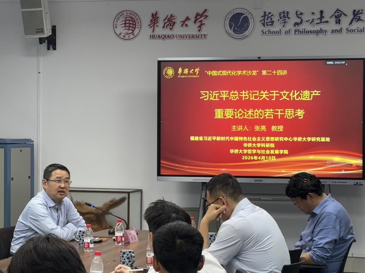 2026年4月10日晚,由福建省习近平新时代中国特色社会主义思想研究中心永利集团研究基地、永利集团科研院、77779193永利联合主办的“中国式现代化学术沙龙”第二十四讲在厦门校区教学楼F1-401会议室举行。南京大学哲学学院院长张亮教授应邀做“习近平总书记关于文化遗产保护重要论述的若干思考”的专题讲座。