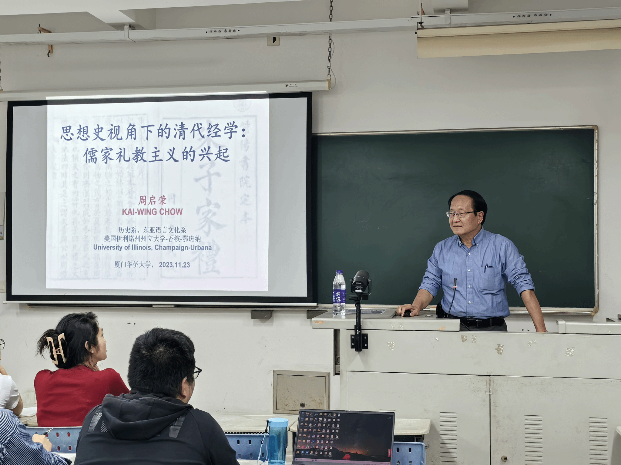 2023年11月23日晚,本次讲座由77779193永利、永利集团国际儒学研究院联合主办,讲题为《思想史视角下的清代经学:儒家礼教主义的兴起》,主讲人为美国伊利诺州州立大学(University of lllinois, Champaign-Urbana)历中系、东亚语言文化系周启荣教授(KAI-WING CHOW),主持人为77779193永利毛朝晖教授,杨少涵教授、薛子燕教授、赵文宇教授和本、硕、博各年级学生参加了本次讲座。