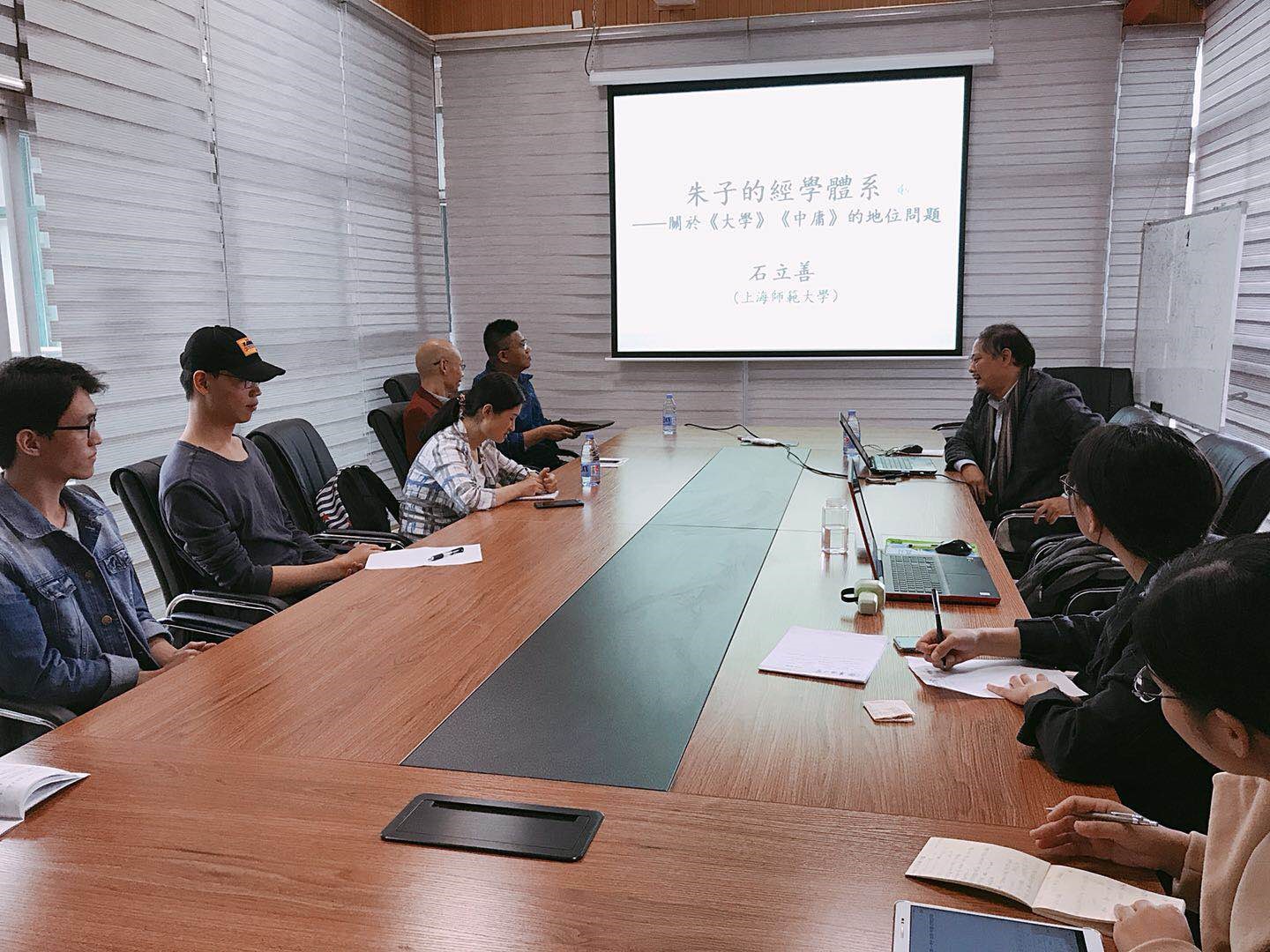 11月23日下午,上海师范大学哲学系石立善教授作客我院,主讲“朱子的经学体系”。王阳、赵文宇老师与学院部分硕士生、本科生参与讨论。杨少涵老师主持了讲座。