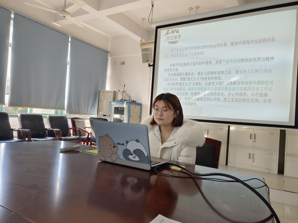首先是来自20级研究生张玉雪的报告,其报告以“马克思对虚无主义的三重批判”为主题,通过对虚无主义的含义、历史演变及其中国样态的分析,指出虚无主义的本质,进而阐述了马克思对虚无主义的批判,思考三重批判对中国现代化的启示。张世远老师点评道,学生资料文献搜集比较充分,但在学术报告中需要注意将书面语转化为浅显易懂的口语表达,并且避免逻辑跳跃。