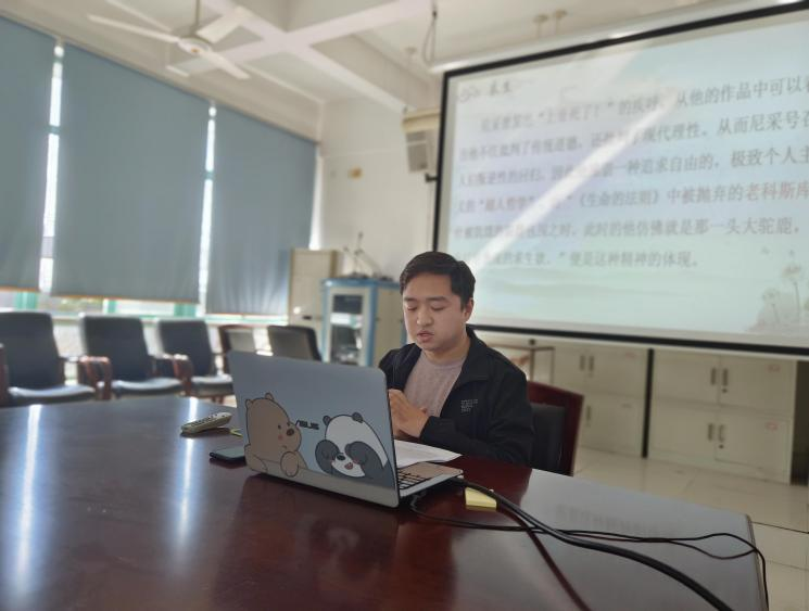 之后,由21级研究生庞云波讲述他关于生死问题的看法,“求生,迎死,超越生死”。其报告结合实际和一些名人观点,提出生死对于人生的积极意义。老师表扬学生选题很好,但主要是在举例,尚未上升到哲学思辨的高度,可以对古希腊等哲学家的生死观进行考察,再提升到学术层面。