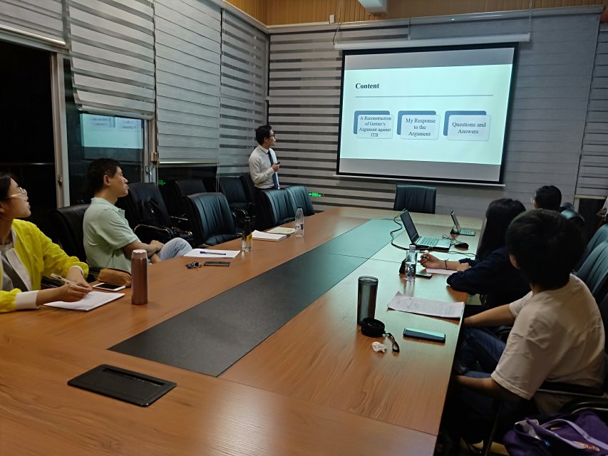 其中,李文琪同学回溯Gettier's的经典问题,不正确的条件可能推出正确的结论;陈鑫同学探寻西方文化传统中“人性恶”的意义,她从圣经中梳理恶的起源,再到奥古斯丁对恶的理解,认为西方的文化以恶为主,因此现代西方法律严格;李显慧同学讲述了音乐哲学的起源与发展,从音乐哲学的起源到形式主义与现实主义的对立,从柏拉图到现代社会的音乐哲学,展示出的是音乐哲学历史发展的脉络;田梦同学浅谈了无产阶级,她从无产阶级的诞生到无产阶级革命,再到无产阶级成为独立的有个性的个人的阐述,展示了无产阶级的历史使命。