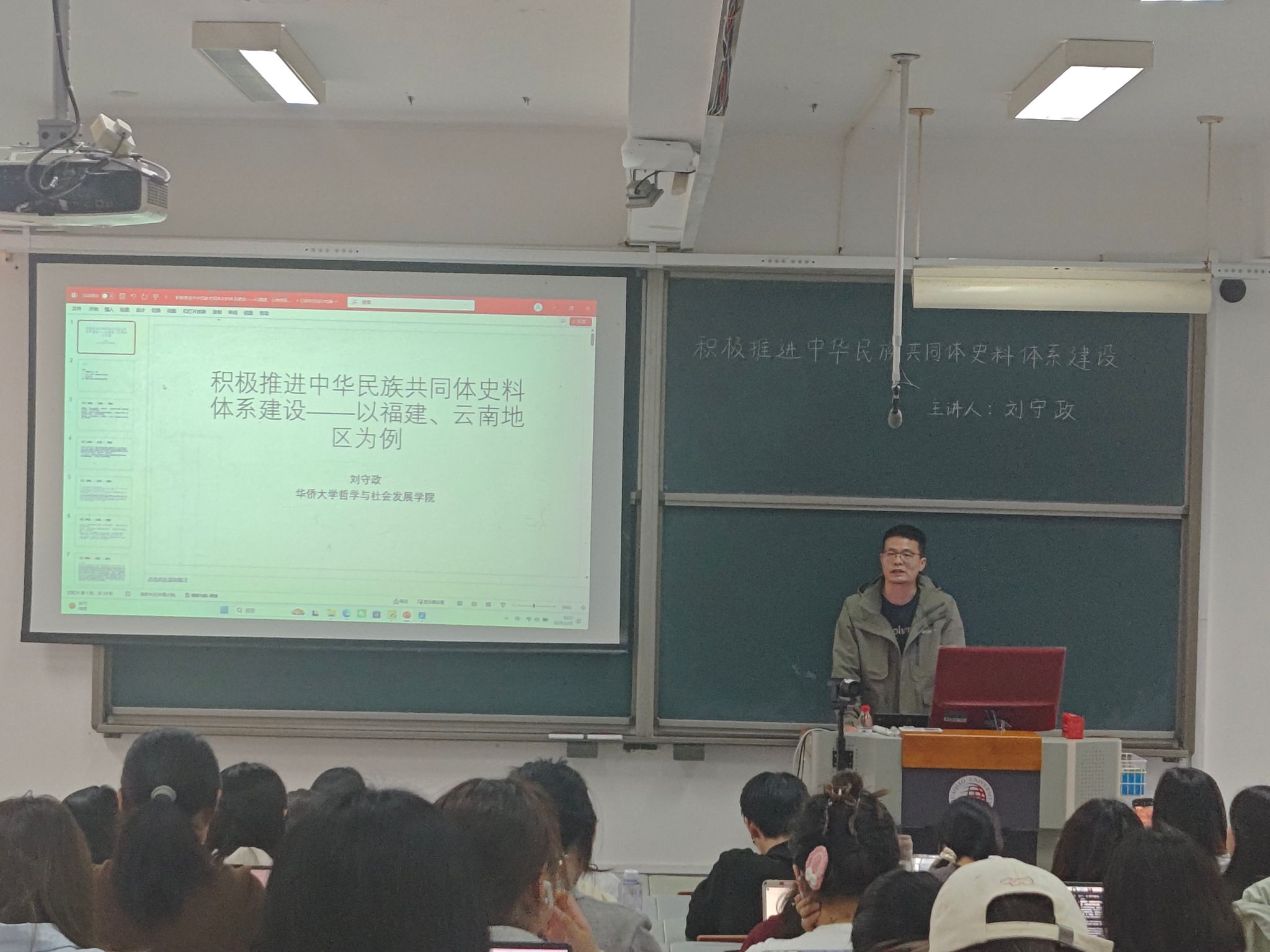 在“礼俗互动视野下的民族信俗史料”部分,刘守政以福建百崎回族乡郭氏宗祠和安溪善坛畲族村妈祖庙为例,深入剖析了不同民族在长期交往过程中,如何通过礼仪习俗的交流与融合,逐步形成具有地方特色的民族文化传统。随后,刘守政以云南白族、彝族、纳西族等民族为例,探讨了道教文化在少数民族地区的传播与影响。他指出,道教文化的传播不仅促进了民族地区的文化交流,也在中华民族共同体建设中发挥了独特作用。最后,讲座在师生们热烈的掌声中圆满结束。