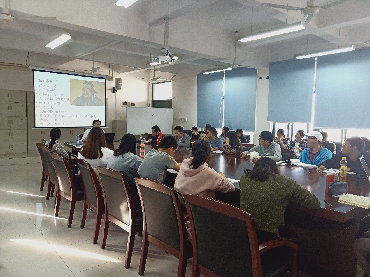 最后,许斗斗教授做了点评,认为肖教授对习近平新时代中国特色社会主义思想、中华优秀传统文化均有深刻的认识,讲解的过程中既有理论阐述,又穿插了大量的事例,有助于师生更好地理解习近平新时代中国特色社会主义思想和中华优秀传统文化的关系,有利于师生加强对理论的学习和认识。