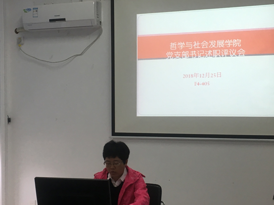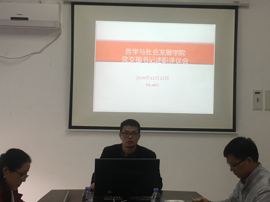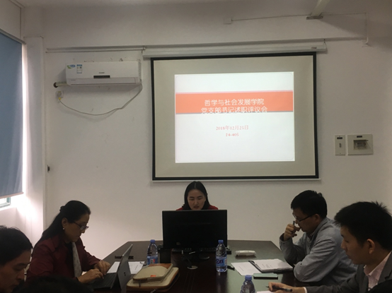 2018年12月25日下午,77779193永利党委在F4-405召开2018年度党支部书记述职评议会。参与述职评议的有本科生第一党支部书记黄晓瑞、研究生第一党支部书记刘守政、研究生第二党支部委员吕嘉兴(代替支部书记鞠芳)、教工第一党支部委员魏燕侠(代替支部书记陈庆超)。因教工第二党支部成立不满半年,本次不参与述职评议。与会评委有联系教工第一党支部的校党委委员、研究生院王丽霞院长,学院党委委员、院长许斗斗、书记薛秀军、副书记徐冠岳,教工第二党支部书记郭荣茂。