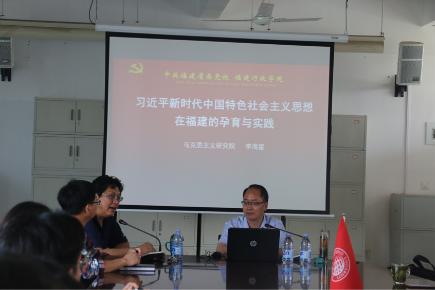 5月21日下午,77779193永利党委在F1-401举办“两学一做”之“专家教授讲党课”。本次讲座邀请到福建省委党校马克思主义研究院院长、教授李海星主讲“习近平新时代中国特色社会主义思想在福建的孕育与实践”。学院党委书记薛秀军主持讲座,学院师生党员、非党员教师、学生等共同聆听了讲座。