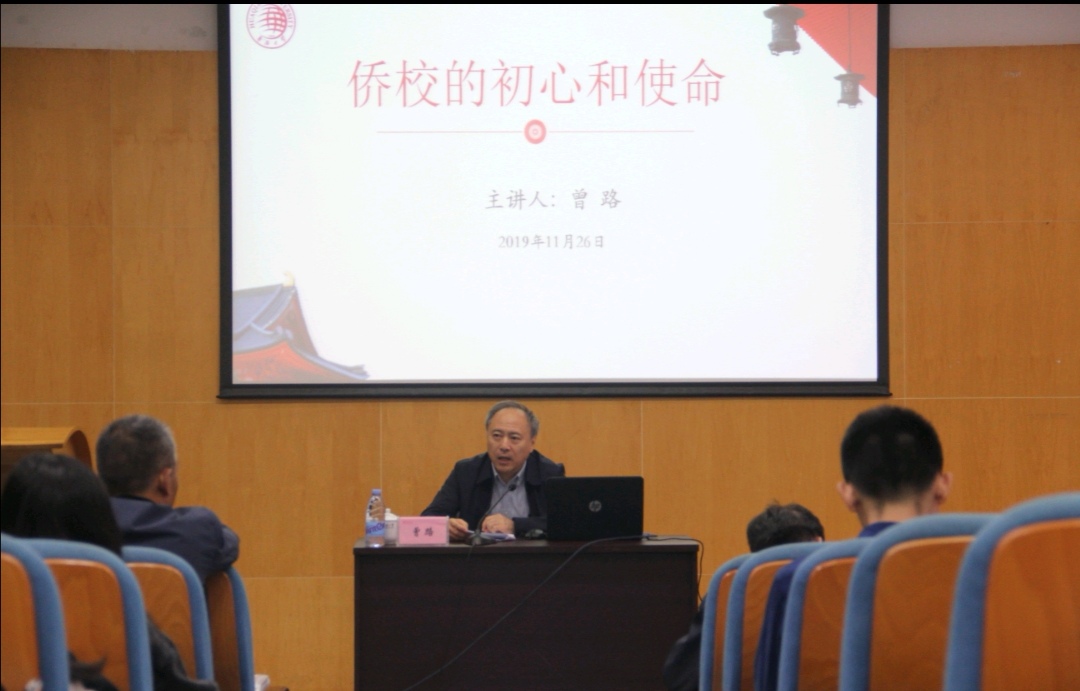 曾路从“中国共产党的初心和使命”“中国特色社会主义大学的初心和使命”及“永利集团的初心和使命”三个方面,层层深入,对“侨校的初心和使命”进行了解读。他结合自身的学习感悟,从原著、原文出发,详细解读了习近平总书记关于“不忘初心、牢记使命”的重要论述。在此基础之上,从教育工作的九个坚持、大学的五大职能等,对中国特色社会主义大学的初心和使命进行了解读和凝练。最后,落脚到侨校使命、侨校建设、侨校创新之上,认为,侨校的初心和使命是服务华侨华人、培育优秀华侨华人子弟、传播中华文化、回馈和服务社会。