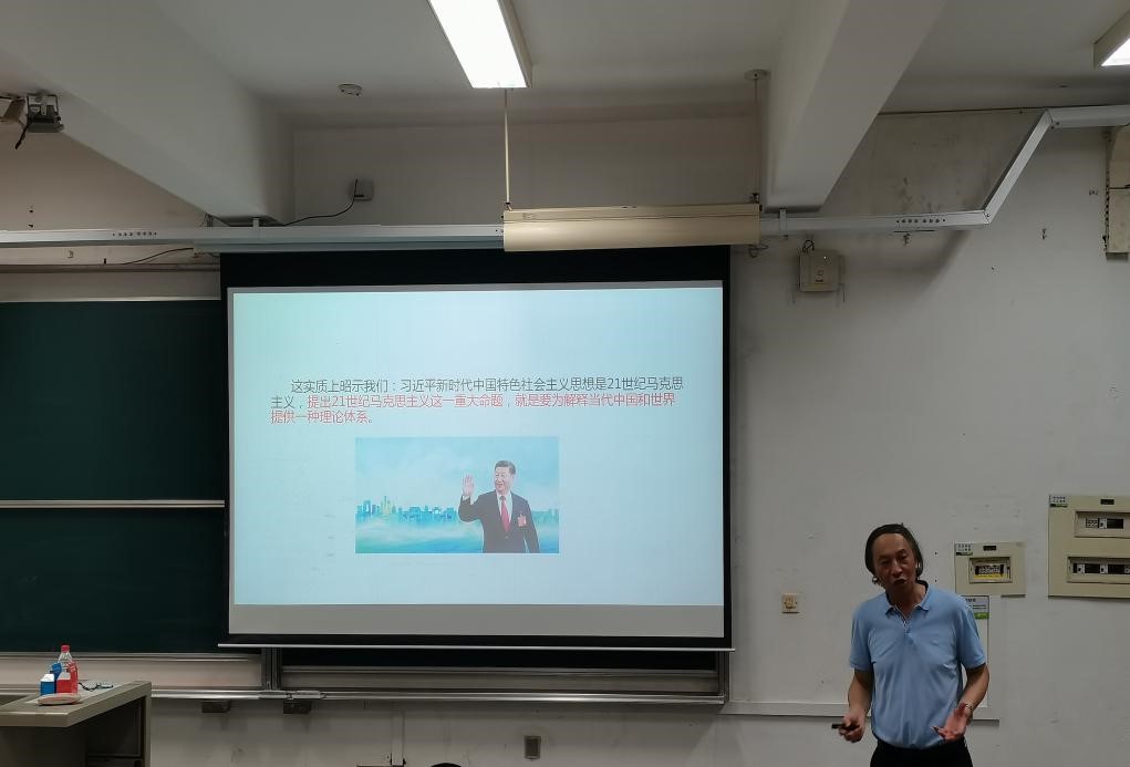 郭健彪教授主要围绕“中国共产党人对马克思主义的坚守、发展与创新”,从历史视角、国际视野引导同学们深入思考中国共产党人一以贯之的信仰和初心,提出“党的初心是为人民服务,党的最终信仰是建立一个消灭剥削,每个人都得以自由追求理想的世界”观点 。他指出,马克思主义的基本目标是全人类的解放,是为最广大人民的幸福而奋斗。无产阶级只有在解放全人类的基础上才能实现自身的解放。这正是党一直以来制定政策的中心。从十九大精神中对“人民对美好生活的向往”的强调,到“民族复兴”的追求,再到“人类命运共同体”的提出,无一不是对马克思主义最根本内核的坚持。郭教授还结合当代中国改革开放四十年来的伟大成就,说明在21世纪,面对“百年未有之大变局”,我们党灵活又与时俱进的阐释马克思主义,在“创新,平衡,绿色,开放,公平”发展观念的指导下,中国正乘着第三次科技革命的浪潮,以富强和包容的形象面向世界,同时也不忘当年“解放人,发展人”的初心和使命。
