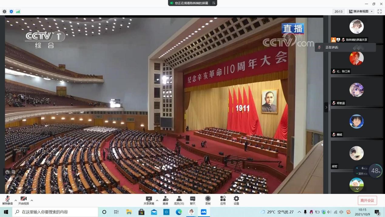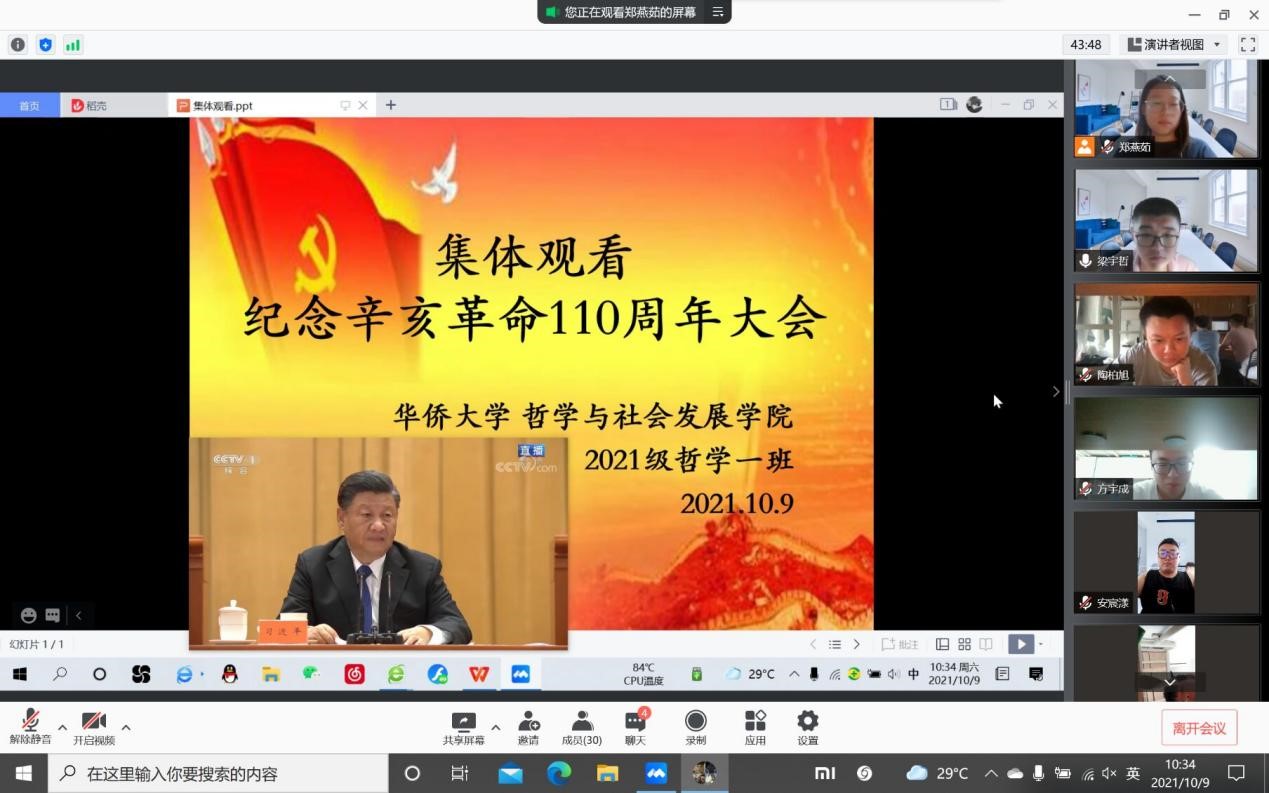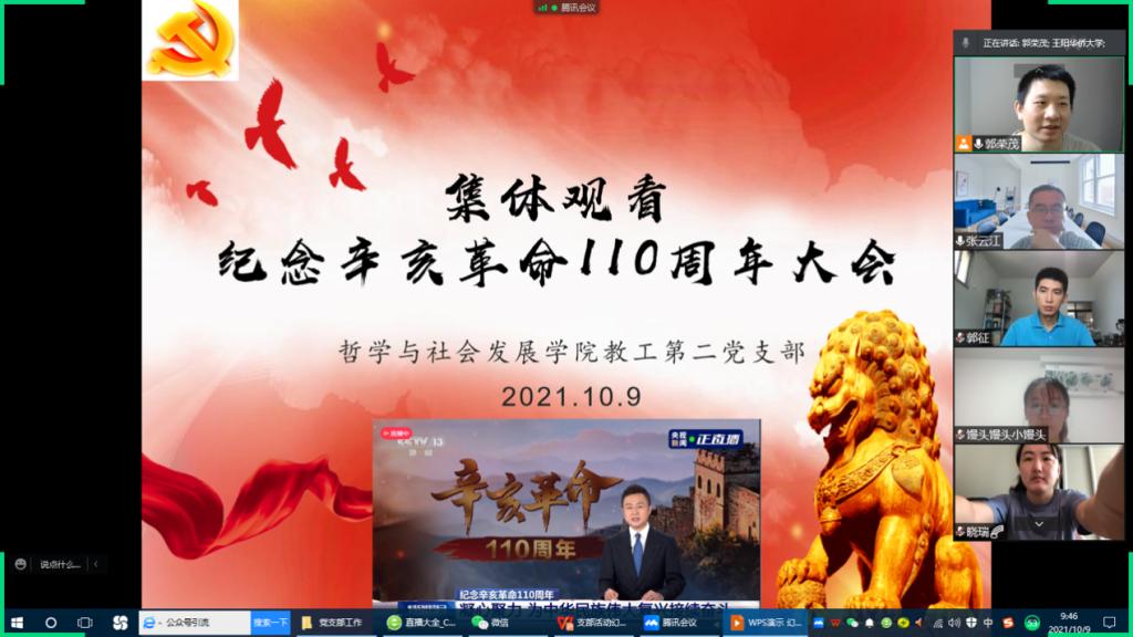 为响应学校党委号召,深入学习辛亥革命的伟大意义,理解党史和辛亥革命史的有机结合。10月9日上午,77779193永利以线上集体观看纪念辛亥革命110周年纪念大会的形式,组织党委理论中心组会议暨党史学习教育学习。学院党委理论学习中心组全体成员、辅导员、学院党委各支部全体成员一同参与学习。