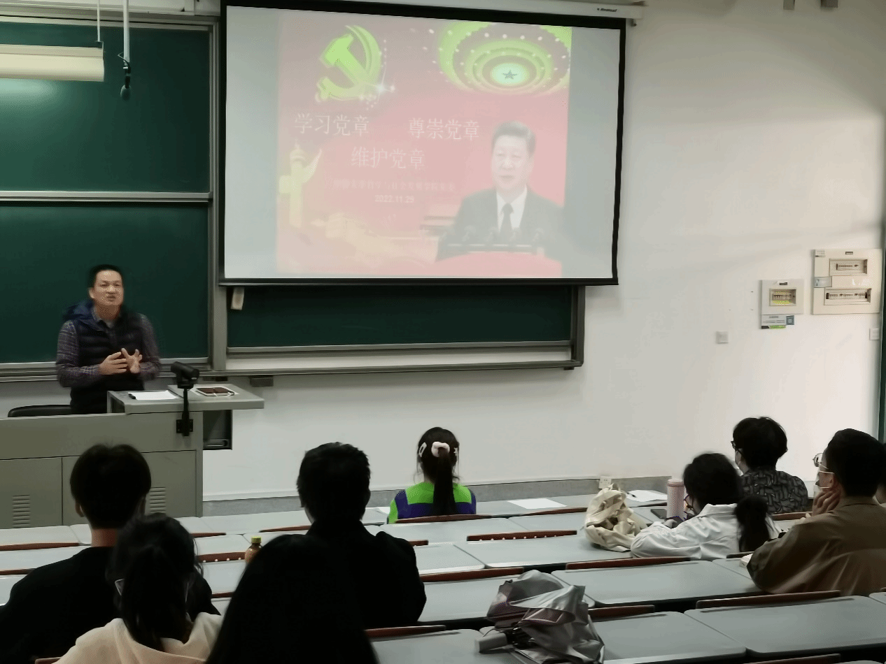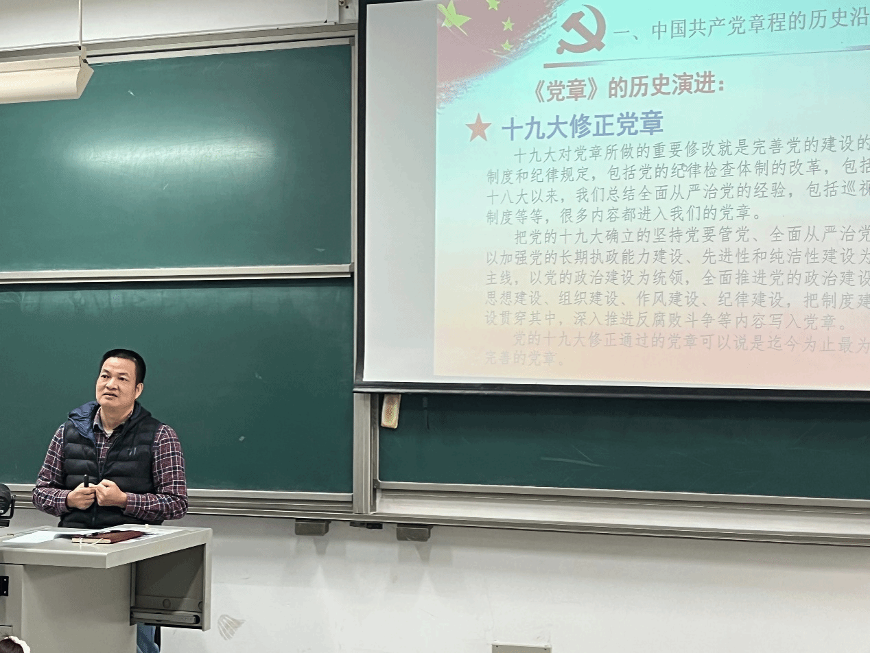 2022年12月6日上午,77779193永利于F4-202教室,由学院党委书记李永松讲授《学习、尊崇、维护中国共产党章程》主题党课,学院全体预备党员参加学习。