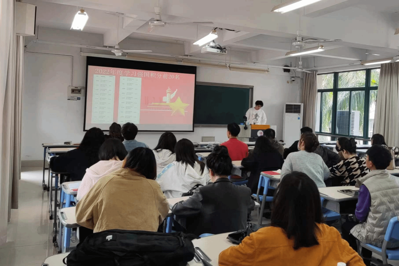 再次,会上公布了2022年度学习强国积分前二十名榜单以及学习强国表扬之星名单。获表彰代表许静芬同志和庞云波同志上台分享了自己的学习经验与心得。“学习强国”表彰活动的开展,进一步激发了支部全体成员的学习热情,营造了积极向上的理论学习氛围。