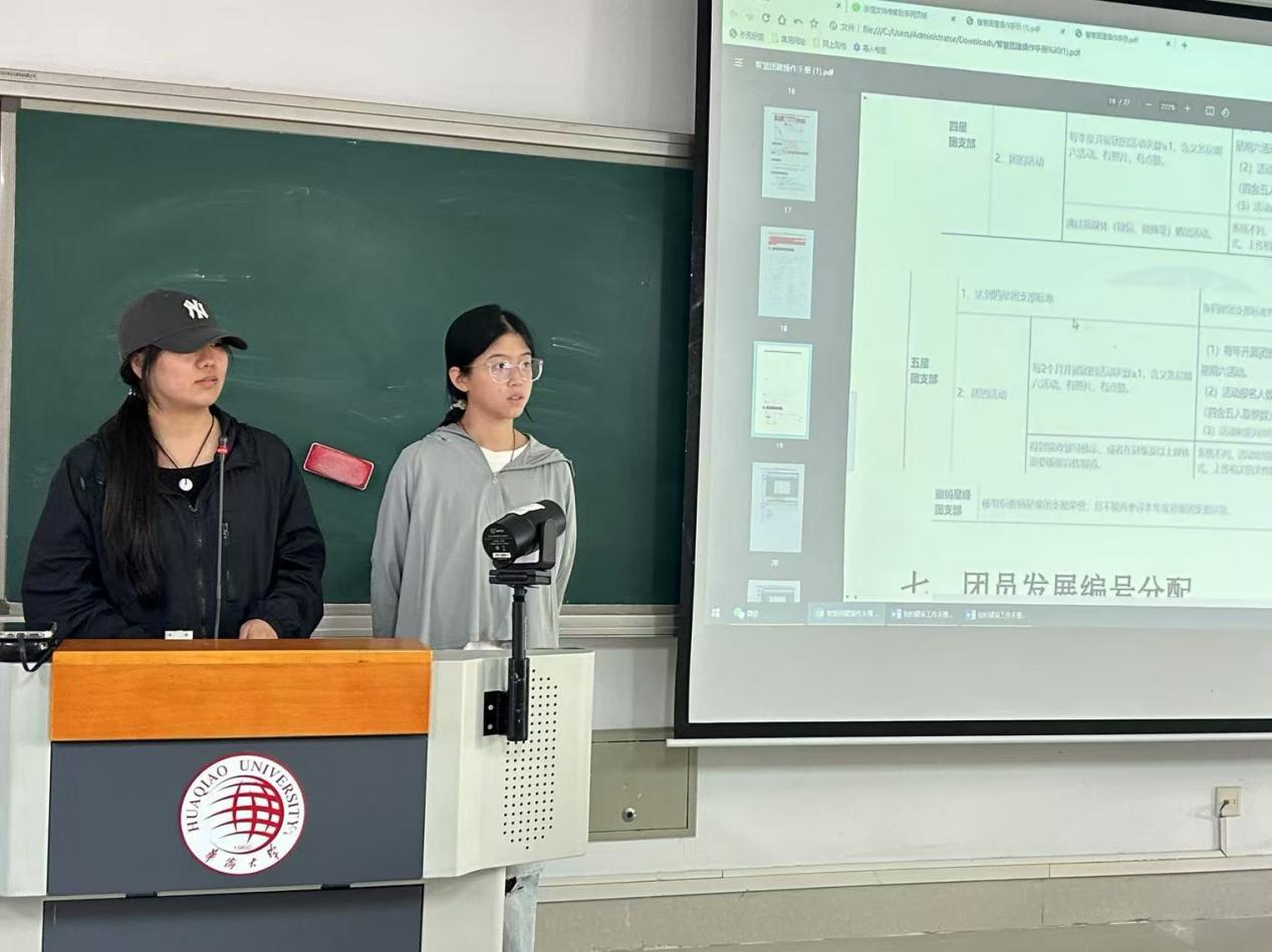 组织部负责人李思雅、张铭恒为各团支书进行相关培训