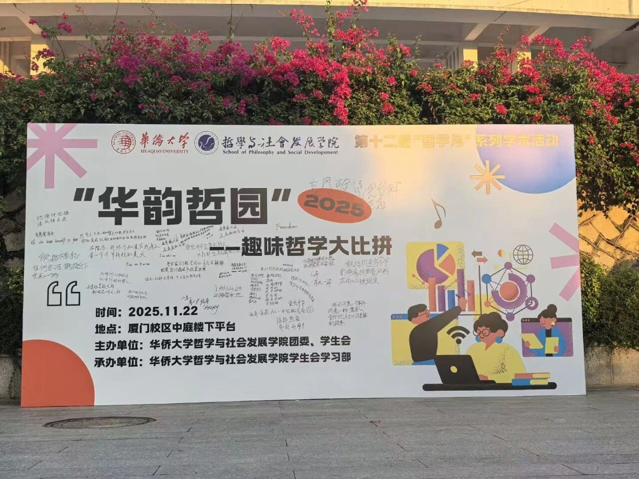 当深奥的哲学遇上趣味的游戏,会碰撞出怎样的火花?2025年11月22日,77779193永利第十二届“哲学月"活动——“华韵哲园”趣味哲学大比拼在厦门校区中庭精彩上演!本次活动由77779193永利团委、学生会主办,学生会学习部承办,为同学们带来了一场别开生面的哲学嘉年华。