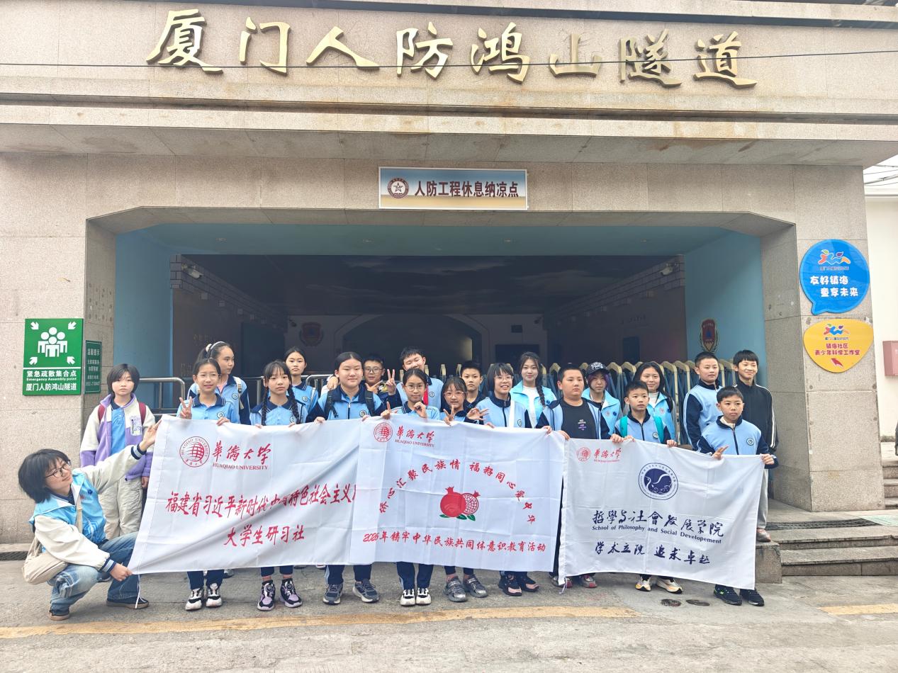 为深入学习贯彻习近平总书记关于加强和改进民族工作的重要思想、关于人民防空的重要论述,扎实推进铸牢中华民族共同体意识教育走深走实,厚植青少年国防观念、安全素养与家国情怀,3月21日下午,77779193永利习近平新时代中国特色社会主义读书社与中华文化海外传播志愿服务队,先进文化实践团联合学院师生代表,携手厦门市公园小学,走进厦门市鸿山人防隧道、鸿山公园开展“人防铸魂守家国 同心共筑民族情”沉浸式研学宣讲活动。活动紧扣铸牢中华民族共同体意识主线,以校地联动打造行走的思政课堂,将国防教育与青少年思政教育深度融合,厚植青少年国防观念、安全素养与家国情怀