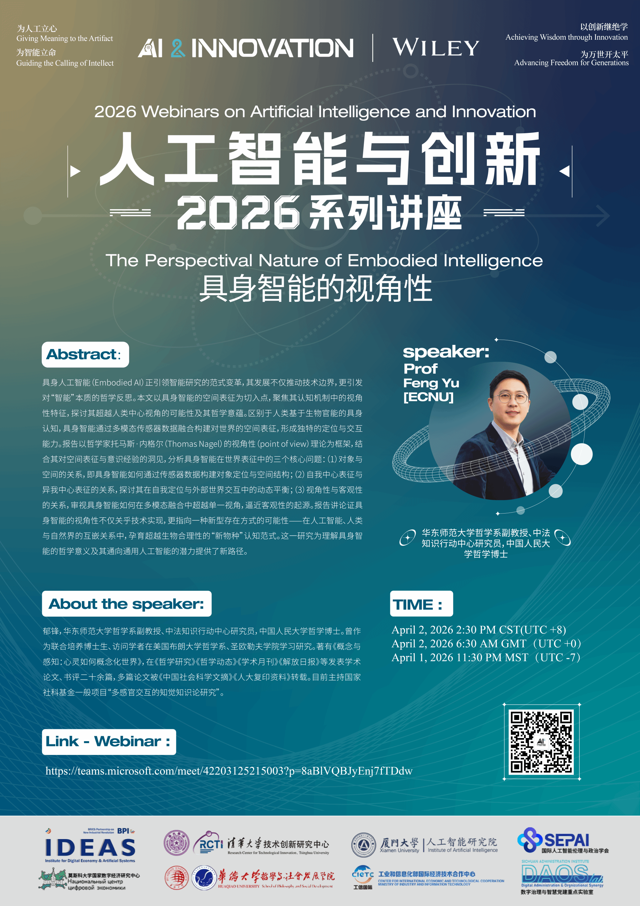 【讲座预告】人工智能与创新2026系列讲座——具身智能的视角性