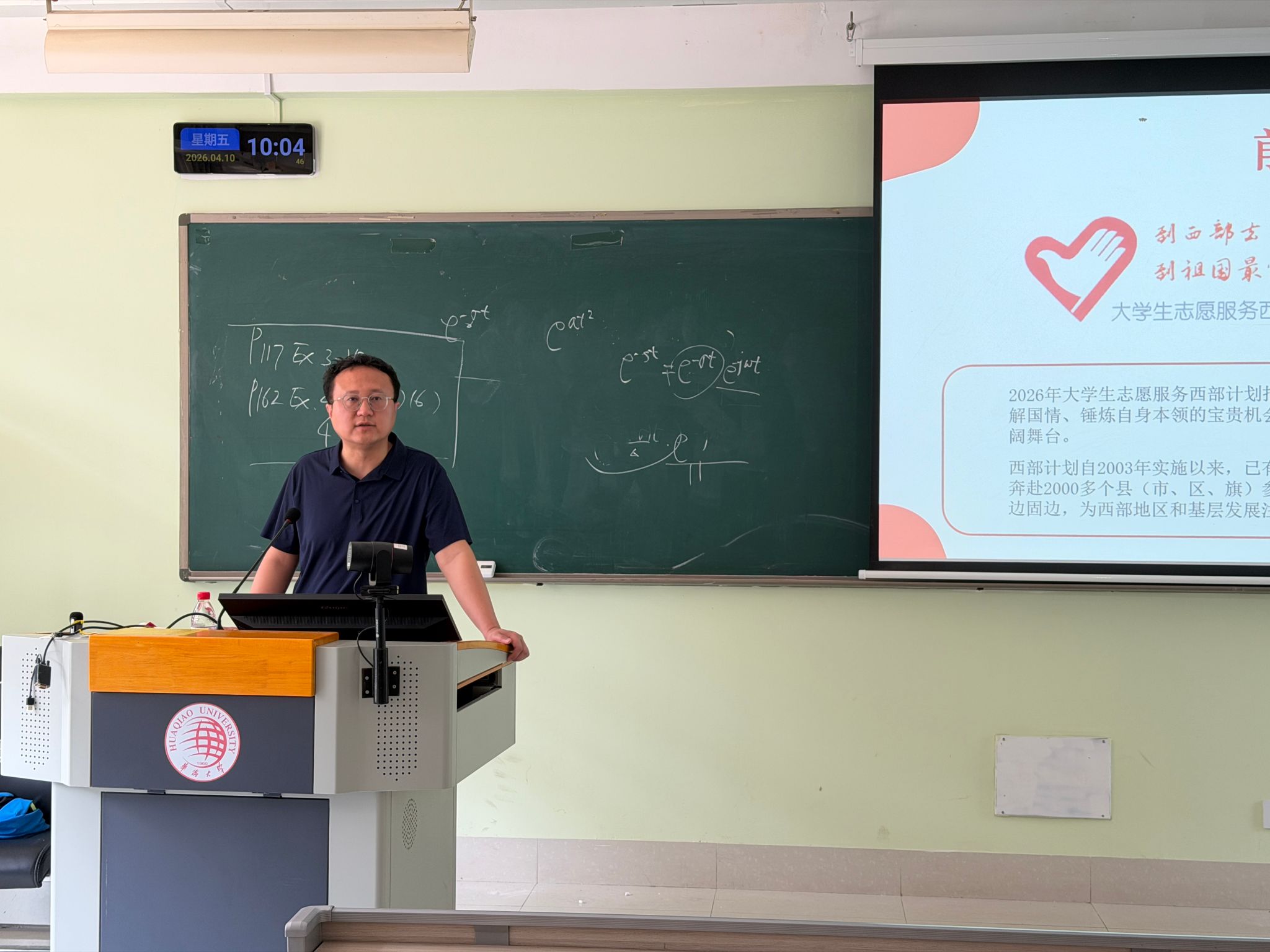 为引导广大青年学生树立正确的择业观,鼓励青年主动投身基层、服务西部,4月12日上午,我院于C1-202顺利举办西部计划宣讲讲座。活动特邀校团委杨恒老师主讲,我院22级、23级有意向西部计划的同学参加与会。