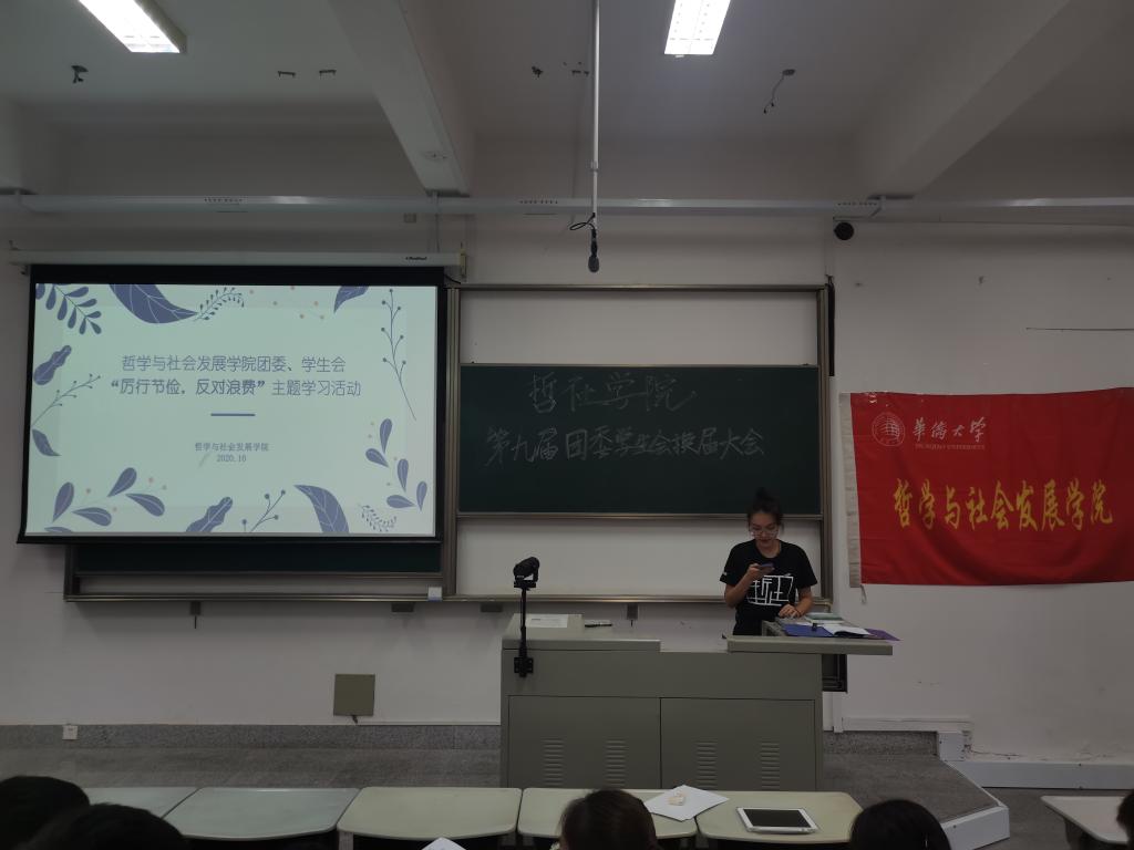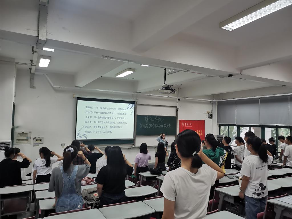 会议伊始,全体参会人员共同观看了一部关于勤俭节约的公益短片,以此激励同学们养成节俭的良好生活习惯。勤俭节约向来是中华民族传统美德,在新时代的征途上,我们唯有不忘初心,继承弘扬厉行节俭,反对浪费的优秀品质,树立艰苦朴素的革命精神,才能在社会发展的道路上走得更远。随后,进行宣誓仪式,由20级哲学1班钱梦娜领读誓词,全体人员跟读宣誓。会议接近尾声,刘泽一对活动进行了总结,她提到,作为青年学生,应该从自身做起,从身边的小事做起,以节约为荣,传承中华民族勤俭节约,艰苦奋斗的优良传统。