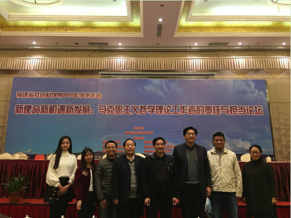 2017年12月9-10日,福建省社会科学界2017年学术年会分论坛“新使命新机遇新发展:马克思主义哲学理论工作者的责任与担当”暨福建省哲学学会、福建省辩证唯物主义研究会、福建省历史唯物主义研究会、福建省伦理学学会等学术年会在福建永泰县联合召开。我院许斗斗院长、薛秀军书记、刘荣军教授、李志强教授、王阳教授、陈庆超教授、薛子燕老师和几位博士、硕士研究生受邀参加会议。会上,许斗斗院长以《马克思关于真理的现实力量》为题作大会发言,薛秀军书记主持第一小组讨论,刘荣军教授在大会自由发言阶段作发言,其他参会师生也分别在小组讨论中发言。