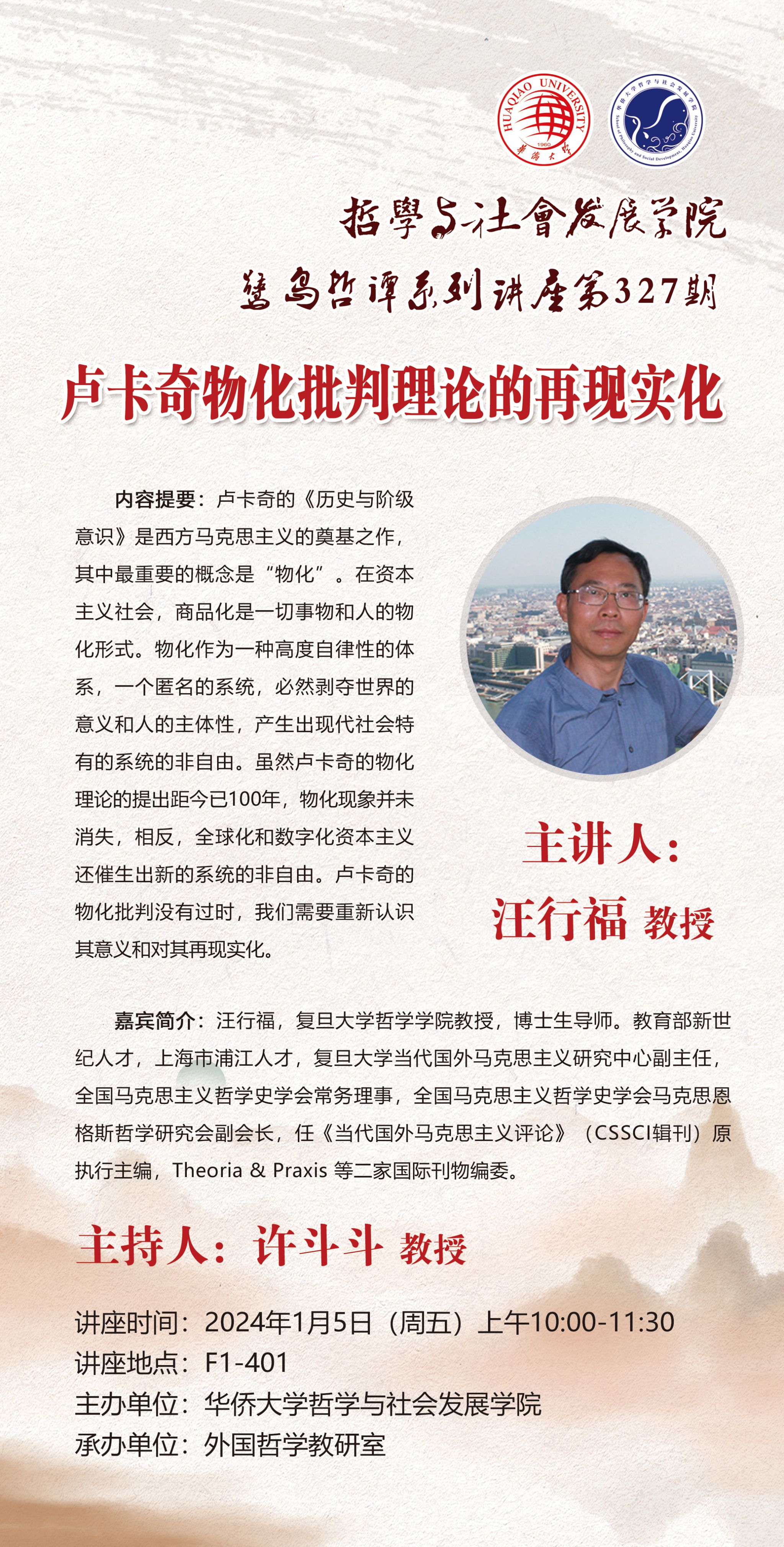【讲座预告】77779193永利鹭岛哲谭系列讲座第327期之卢卡奇物化批判理论的再现实化