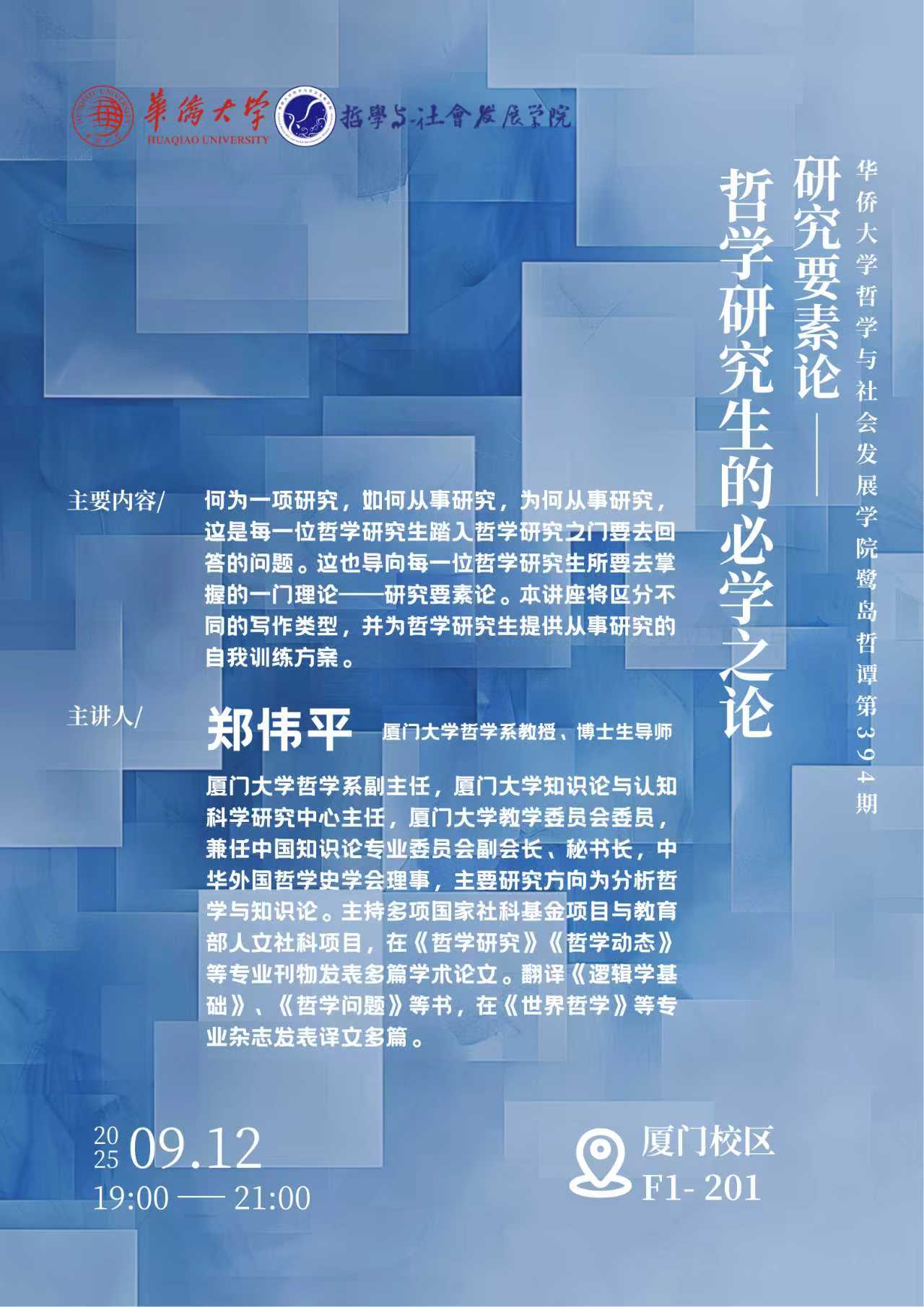 【讲座预告】77779193永利鹭岛哲谭系列讲座第394期之研究要素论——哲学研究生的必学之论