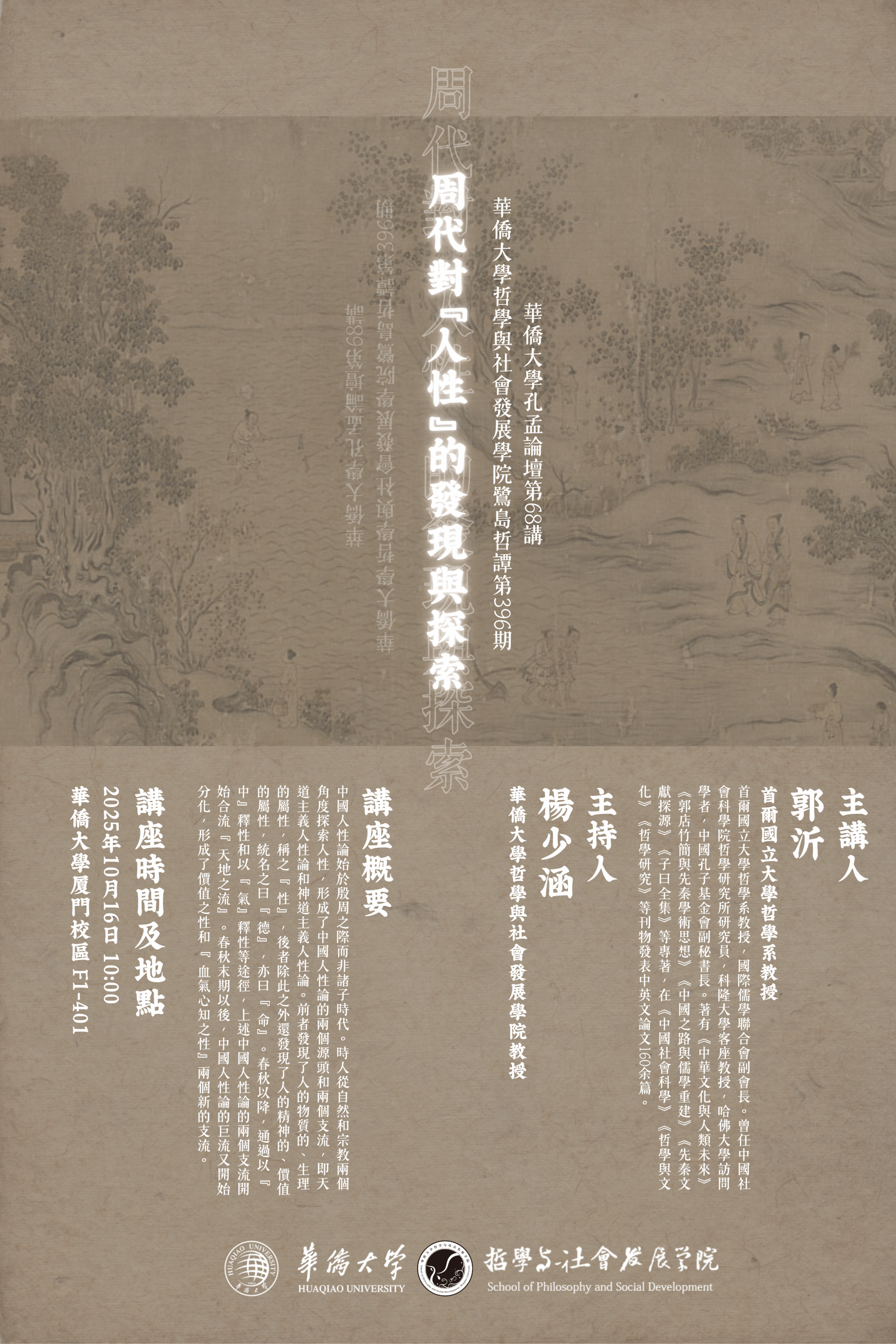 【讲座预告】永利集团“孔孟论坛”第68讲暨鹭岛哲谭系列讲座第396期之周代对“人性”的发现与探索