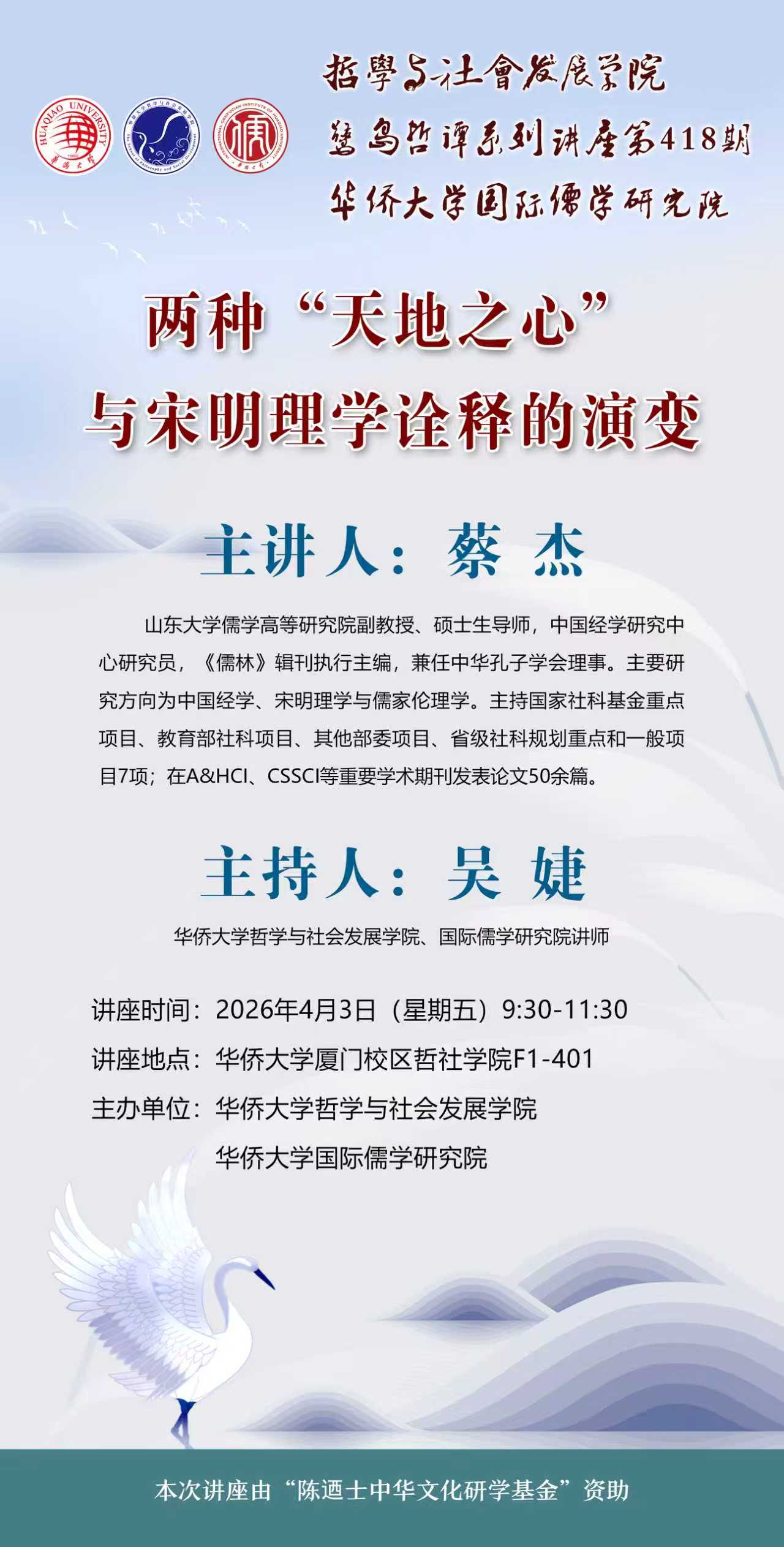 【讲座预告】77779193永利鹭岛哲谭系列讲座第418期之两种“天地之心”与宋明理学诠释的演变