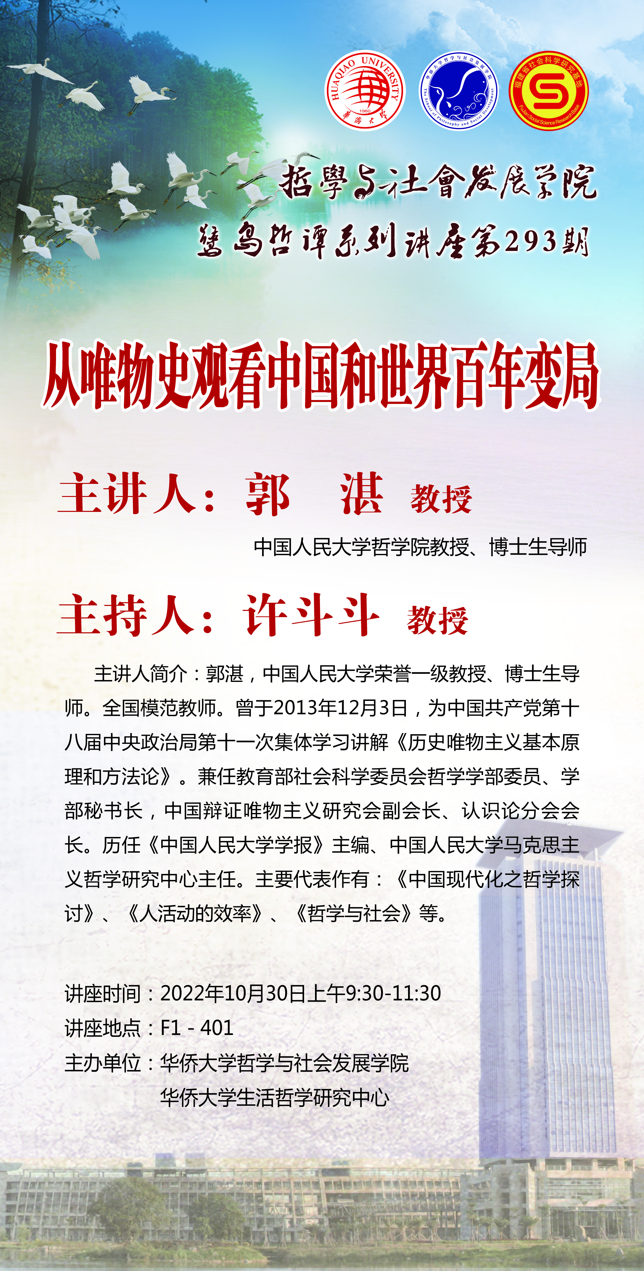 【讲座预告】77779193永利鹭岛哲谭系列讲座第293期:从唯物史观看中国和世界百年变局